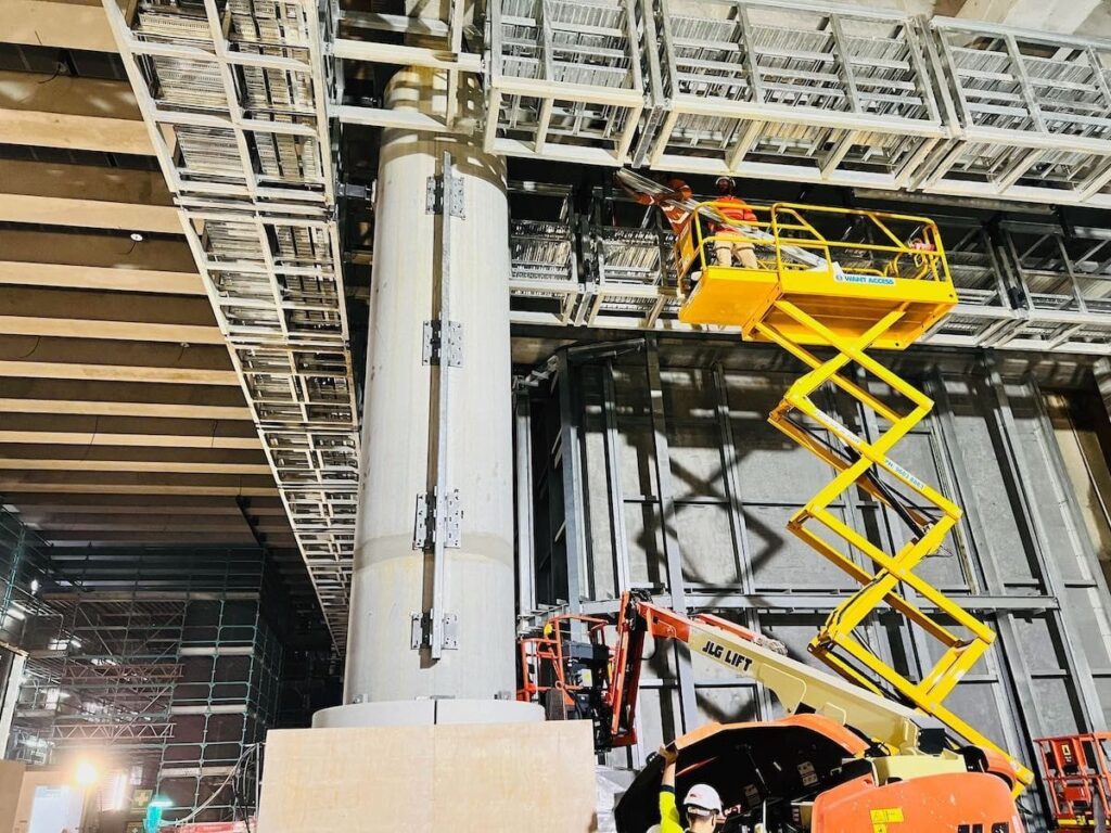 Precise Way recently completed the facade work at Moore Park Tunnel Portal and adjoining Substation Building on Sydney Light Rail Project. Project involved complex setup of structural steel cassette system, spotted gum timber battens, Concealed Fixed Metal Doors and Stainless Steel Anti-throw Mesh Screens. All these components were put together by seamless project management and highly skilled workmanship.